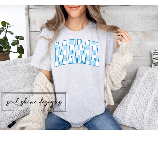 DTF Transfer Blue And White Checkered Mama